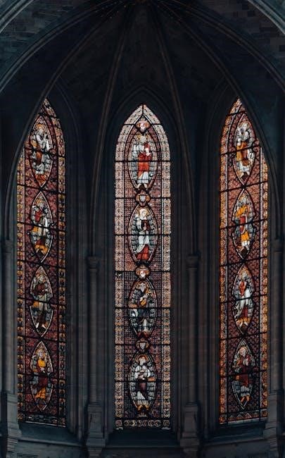 Stained glass patterns are detailed templates used to create stunning glass artworks. These patterns typically include outlines of shapes‚ designs‚ and colored sections that guide the cutting and assembly of glass pieces. Available in various formats‚ including PDF‚ they often feature intricate designs suitable for windows‚ panels‚ or decorative items. Enthusiasts can download these patterns for free‚ offering a cost-effective way to explore creative projects. Whether for beginners or experienced artists‚ stained glass patterns provide a blueprint for transforming glass into beautiful‚ functional pieces of art.